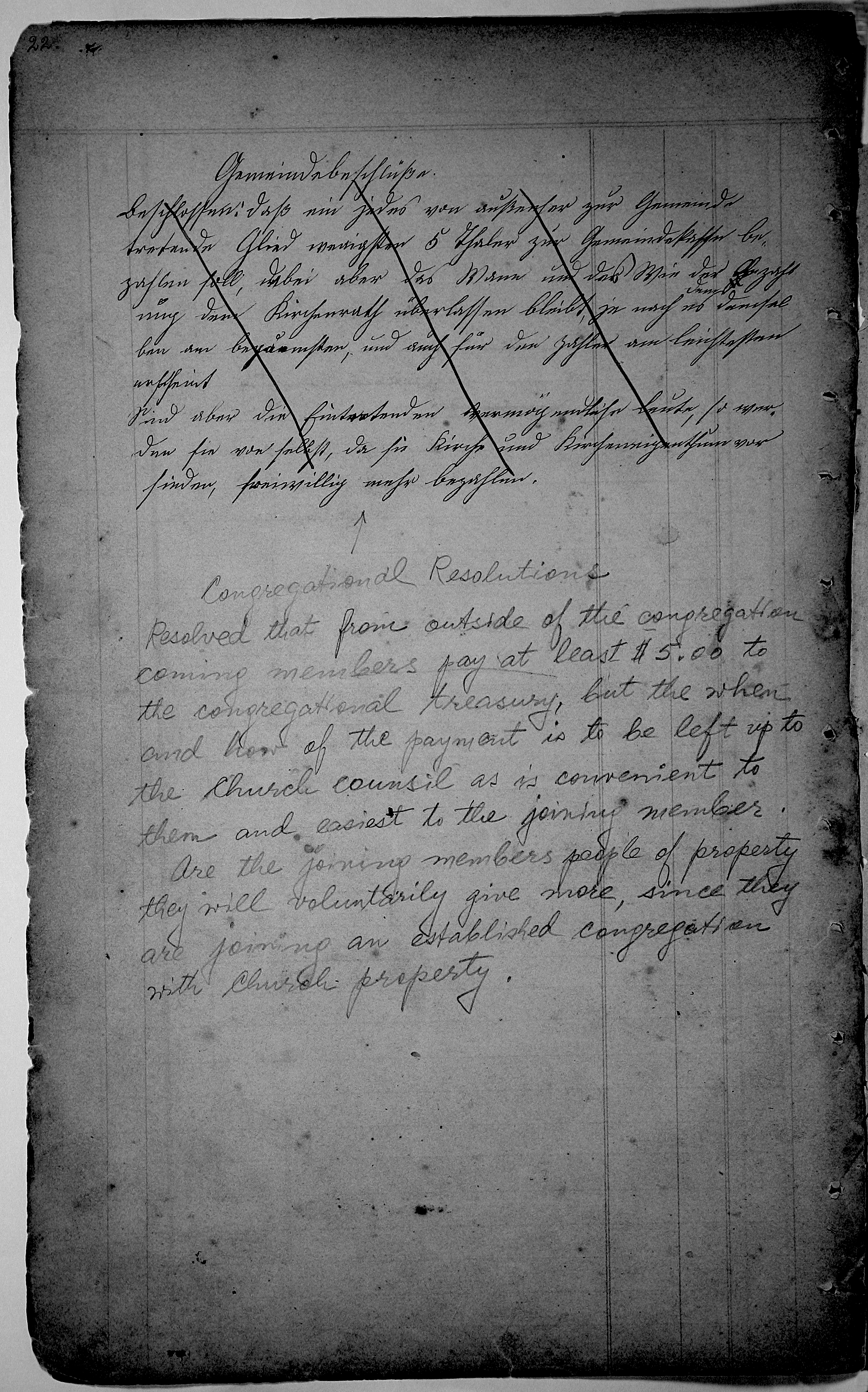 Resolved: that every member joining the congregation from outside shall pay at least 5 Thaler to the church treasury, but the time and method of payment shall be left to the Church Council, as it appears most convenient/suitable to them, and also easiest for the payer.