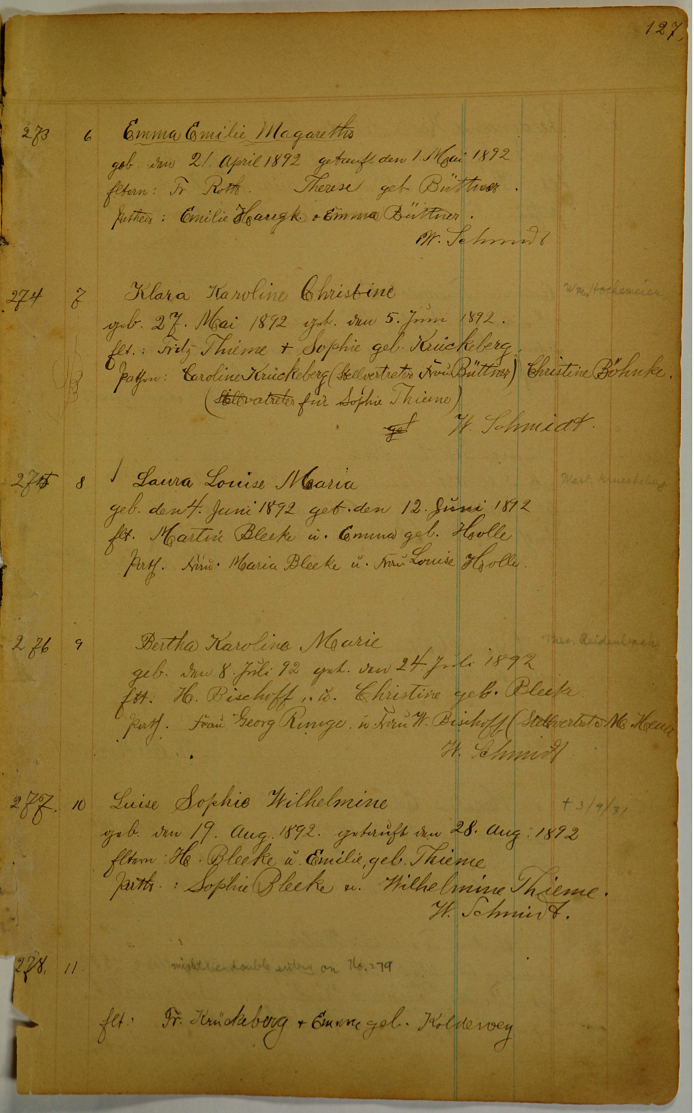 Godparents: Caroline Krückeberg (deputy for Mrs. Bütter) Christine Böhnke