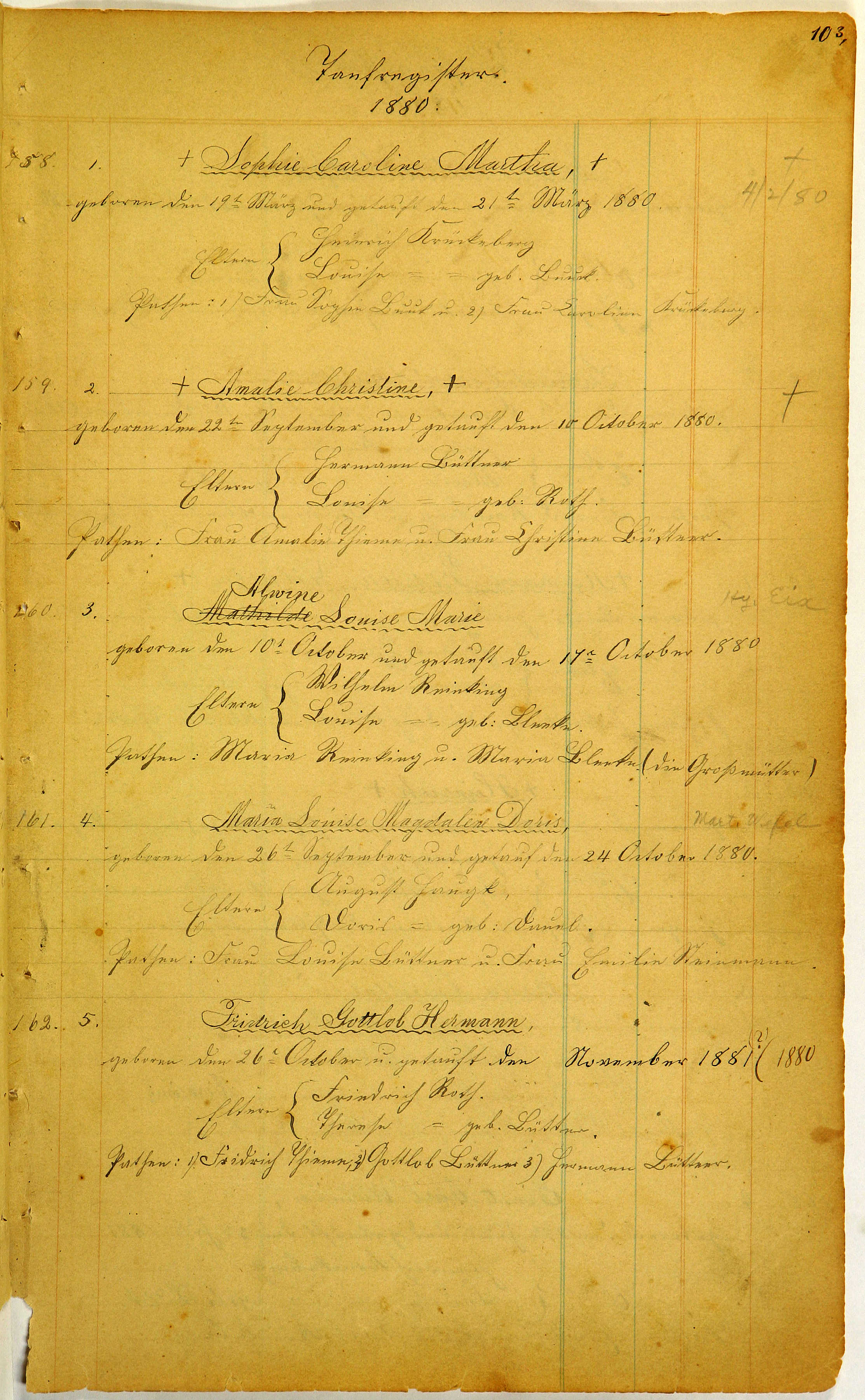Godparents: Mrs. Amalie Thieme and Mrs. Christine Büttner